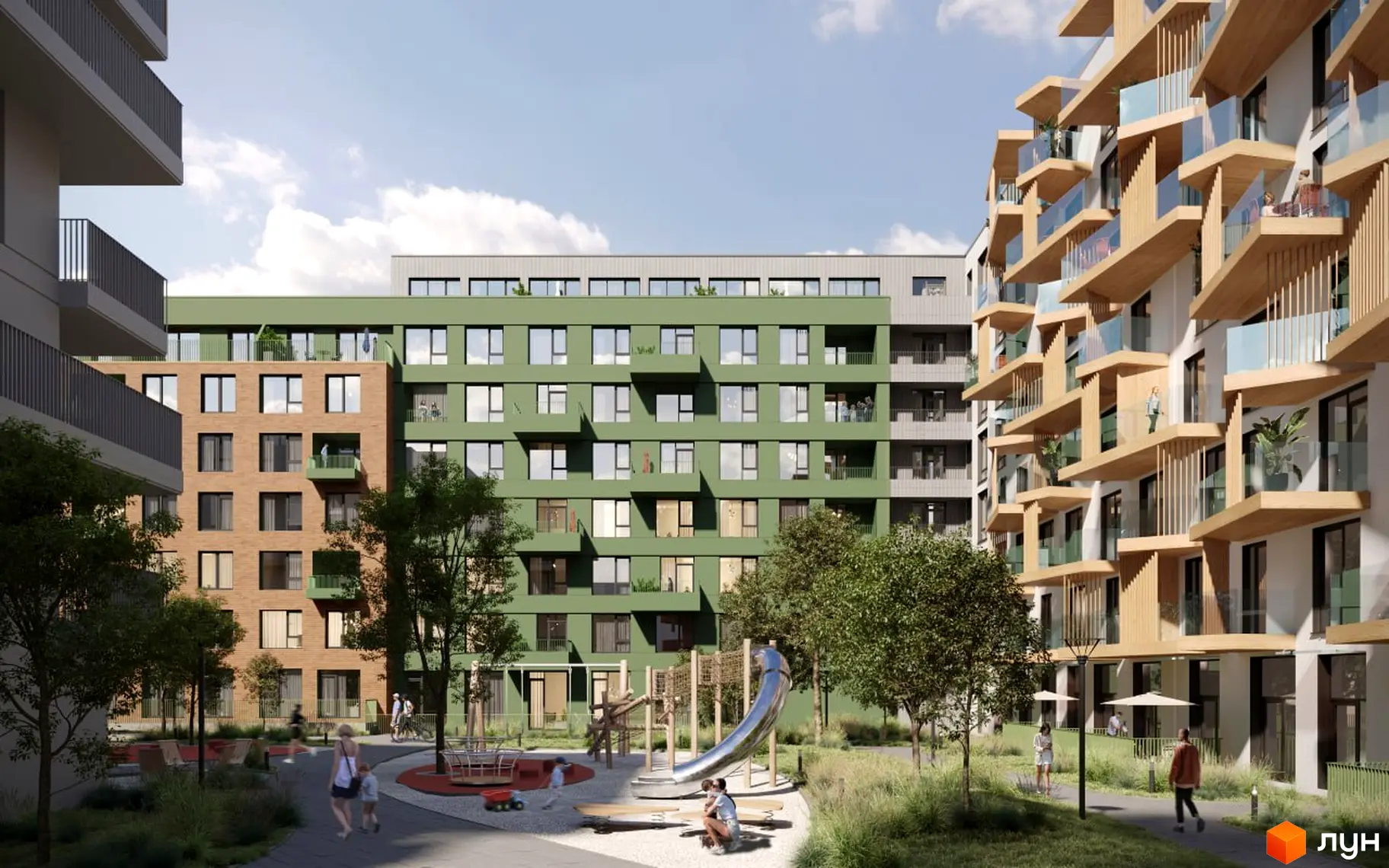 Керувати будівництвом 11-секційного комплексу (10 будівель), що зводиться у три черги — це насамперед виклик для логістики та управління. Для «ХоСаРо» це означає паралельне ведення робіт на кількох майданчиках: від підготовки котловану для третьої черги до фасадних робіт на першій. Це вимагає ювелірного планування ресурсів, безперебійних поставок та бездоганної координації десятків субпідрядників — процес, який ми успішно адмініструємо.